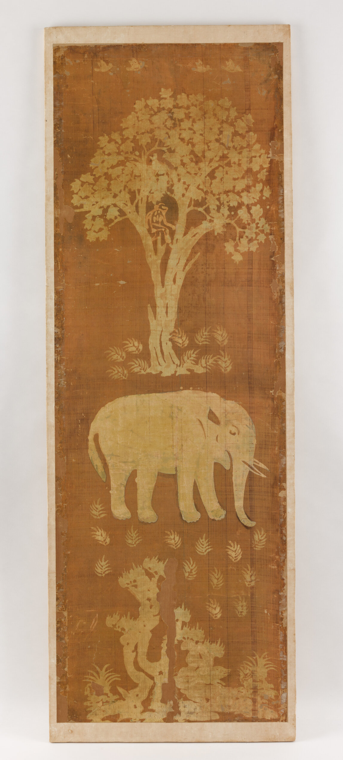 鸚鵡﨟纈屛風・象木﨟纈屛風(北倉)(おうむろうけちのびょうぶ・ぞうきろうけちのびょうぶ) (ろうけつ染めの屛風) 2扇