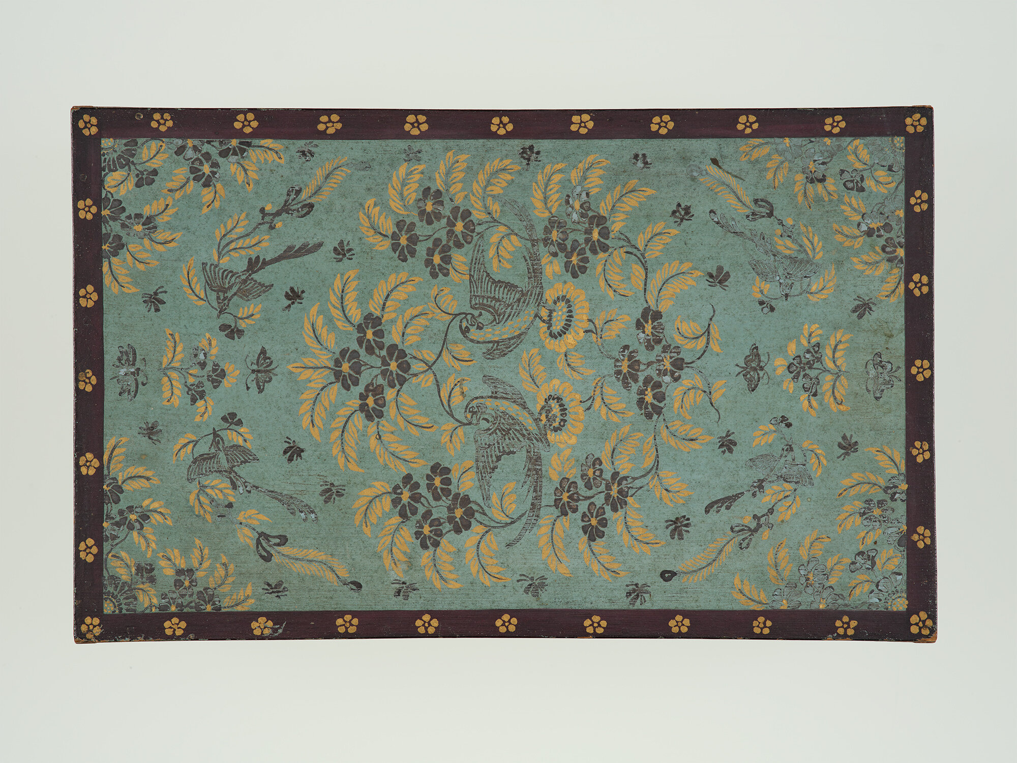 碧地金銀絵箱(中倉)(へきじきんぎんえのはこ) (花鳥文様の脚付き箱) 1合